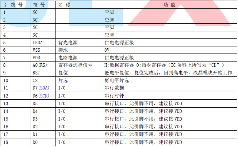 6. 接口简单方便:可选I²C 总线、4 线SPI 串口、并口(6800 时序或8080 时序可选择)。