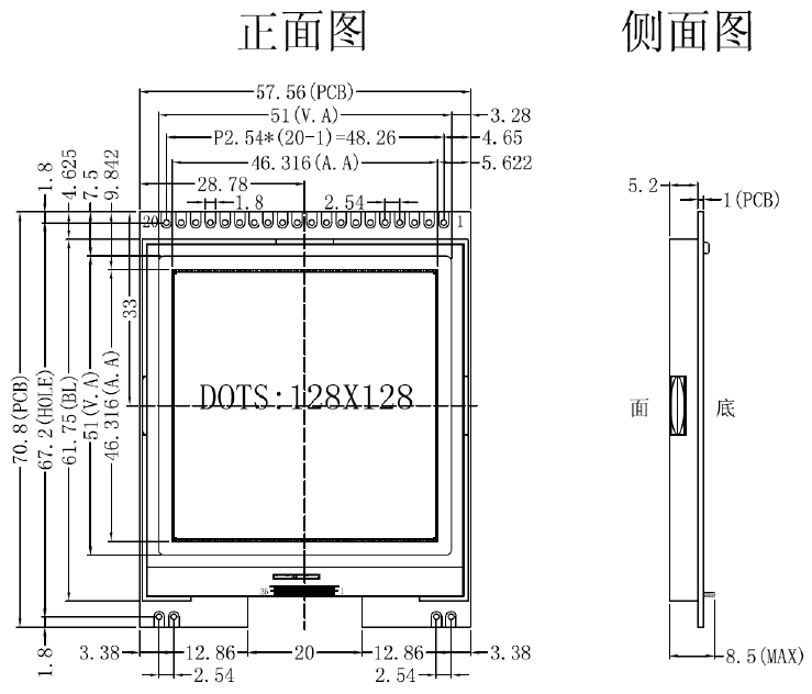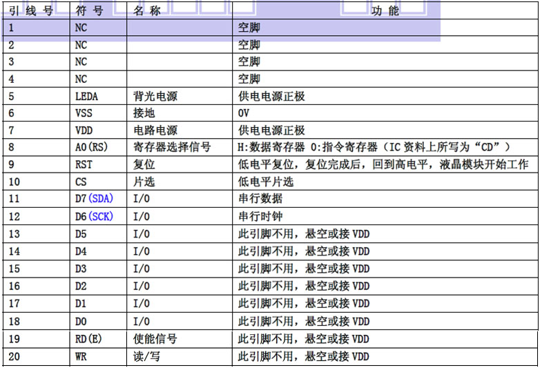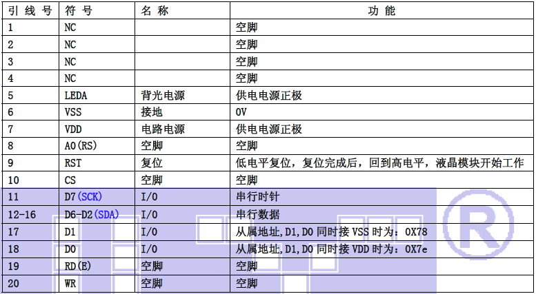●或显示16 个×8 行=128 个的8*16 点阵的英文、数字、符号。
