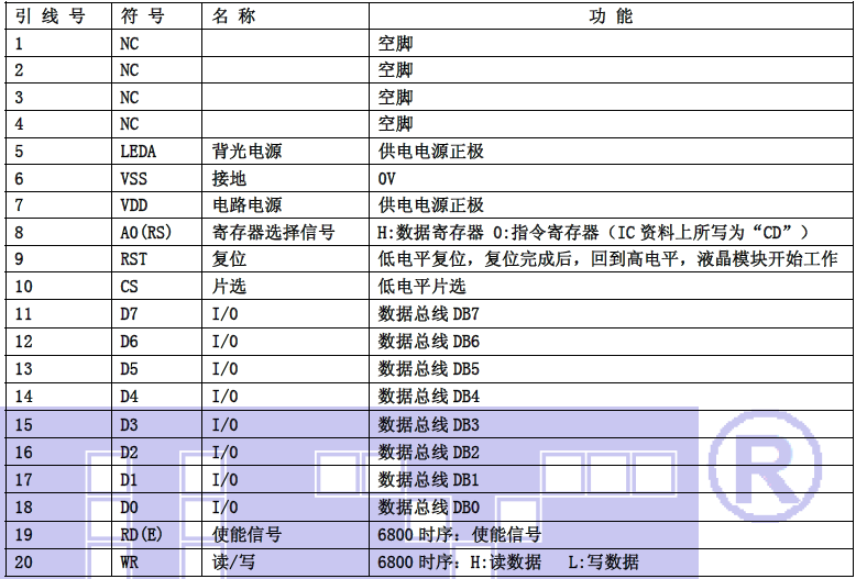 6. 接口简单方便:可选I²C 总线、4 线SPI 串口、并口(6800 时序或8080 时序可选择)。