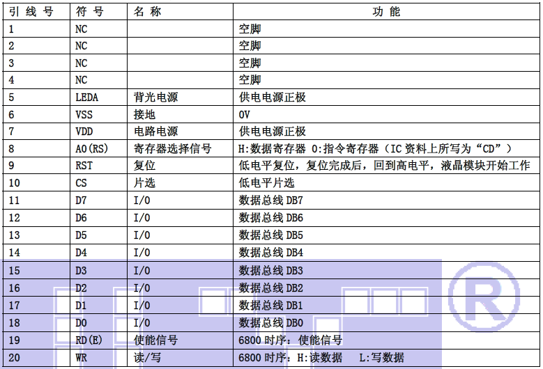 ●或显示21 个×16 行的5*8 点阵的英文、数字、符号。