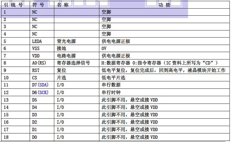 ●或显示16 个×8 行=128 个的8*16 点阵的英文、数字、符号。