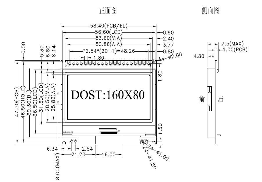 5.指令功能强: 可软件调对比度、正显/反显转换、行列扫描方向可改(可旋转180 度使用)。