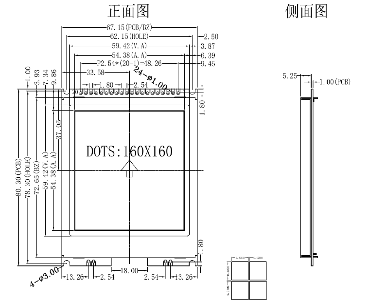 3. 功耗低:1 - 270mW(不开背光1mW <3.3V@0.3mA>,开背光不大于270mW<3.3V@80mA>);
