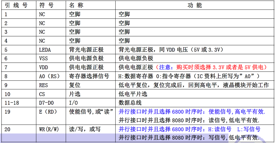 6. 接口简单方便:并口(6800 时序或8080 时序可选择)。