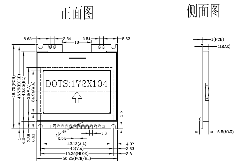 3. 功耗低: 不带背光1mW(3.3V*0.3mA),带背光不大于150mW(3.3V*45mA);