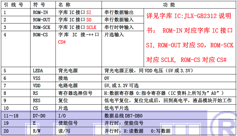 (1)并行时接口引脚功能