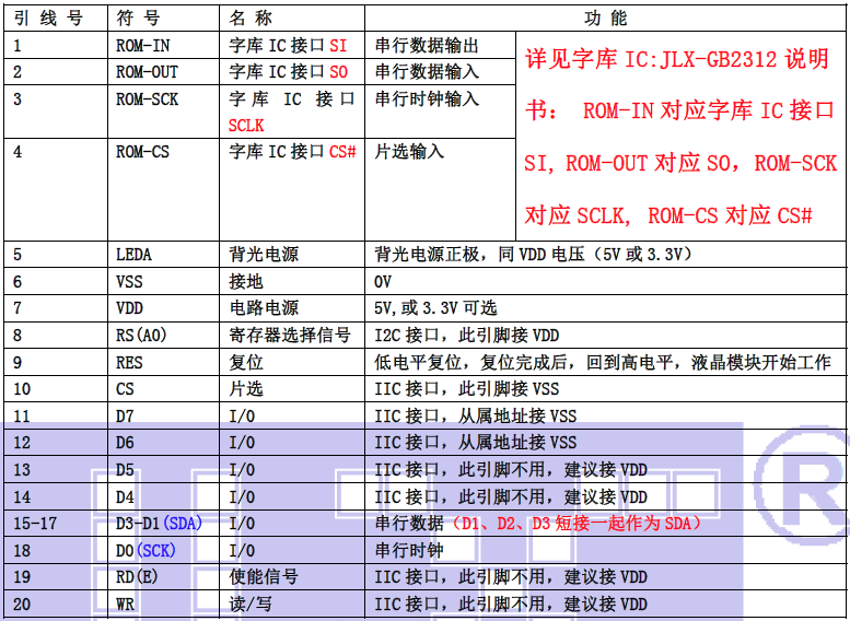 (3)模块的IIC 接口引脚功能