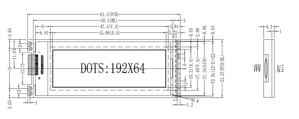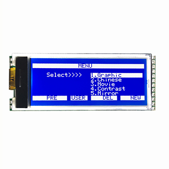 5.指令功能强:可软件调对比度、正显/反显转换、行列扫描方向可改(可旋转180 度使用)。