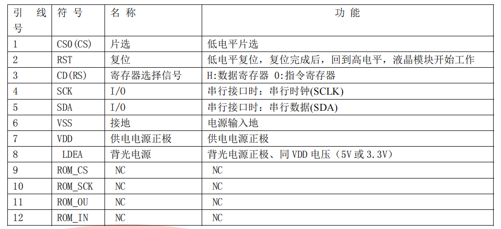 3.功耗低:当电压为3.3V 时,功耗低:不带背光1mW(3.3V*0.3mA),带背光不大于100mW