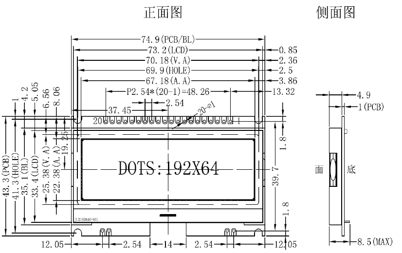5. 指令功能强:可软件调对比度、正显/反显转换、行列扫描方向可改(可旋转180 度使用)。