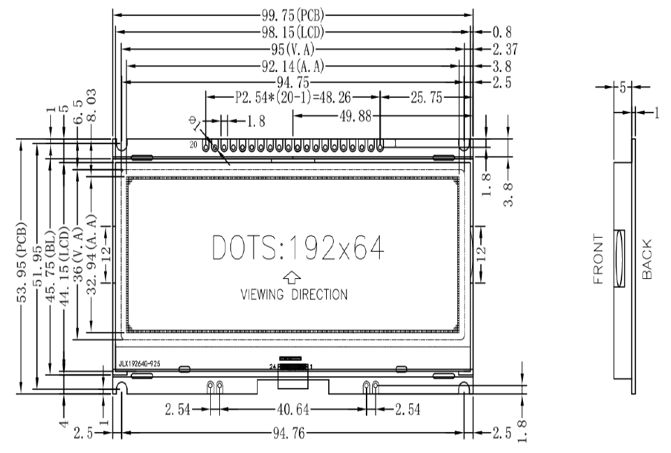2.5 指令功能强:可软件调对比度、正显/反显转换、行列扫描方向可改(可旋转180 度使用)。