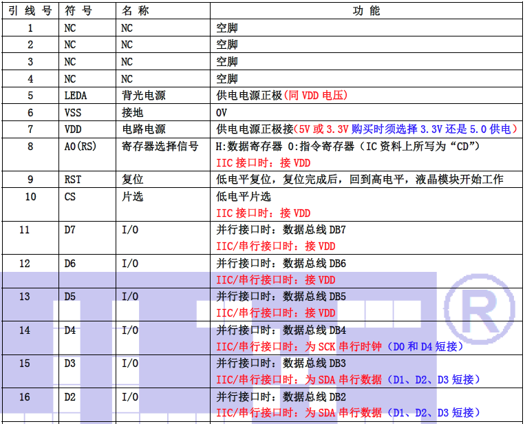 2.6 接口简单方便:并行、串行、IIC 接口;