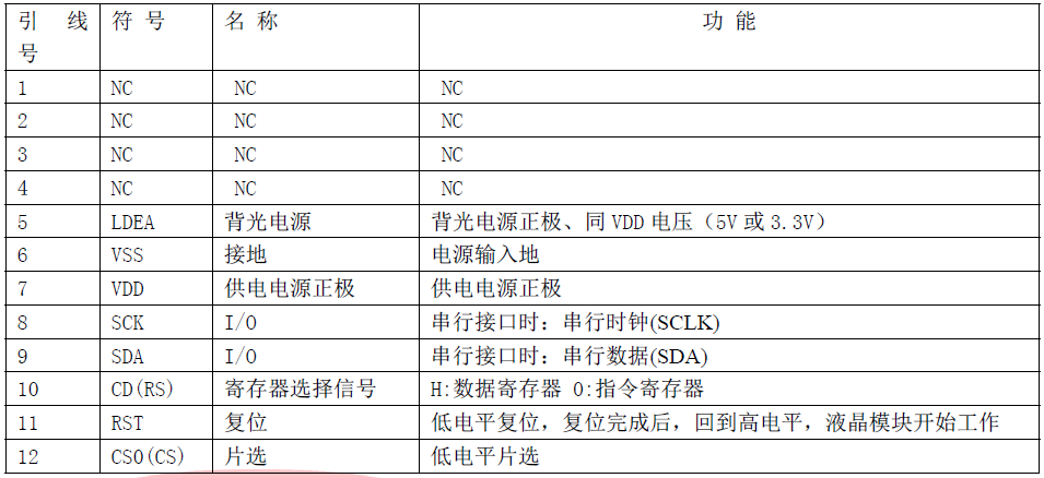 3. 功耗低:当电压为3.3V 时,功耗低:不带背光1mW(3.3V*0.3mA),带背光不大于100mW