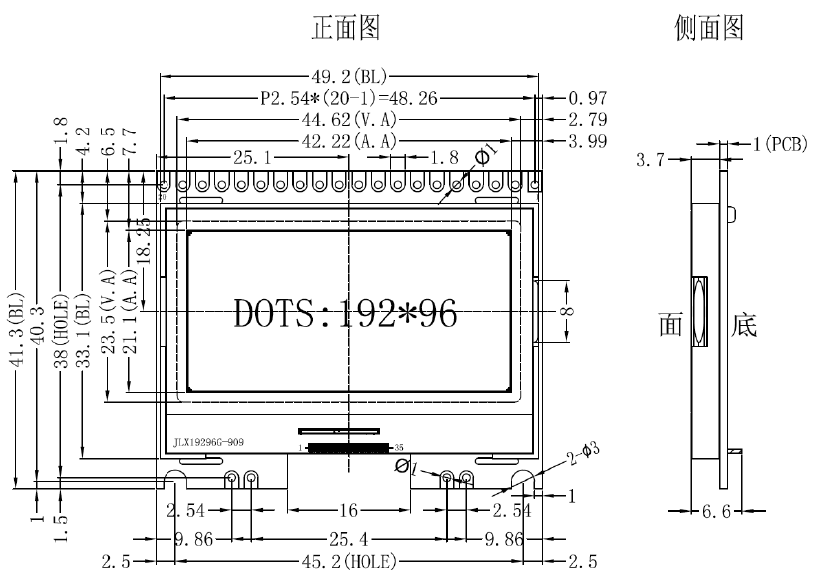3. 功耗低: 不带背光3.8mW(3.3V*(0.3mA 参考值)),带背光不大于153mW(3.3V*46mA);
