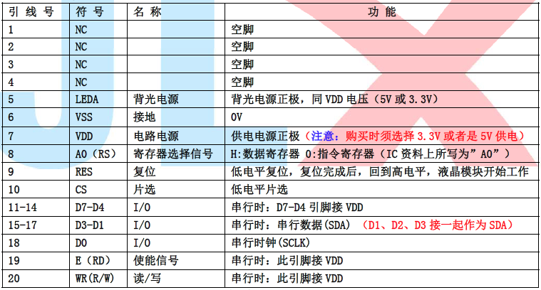 6. 接口简单方便: 采用串行接口,或选择并口(6800 时序和8080 时序可选),或I2C(IIC)