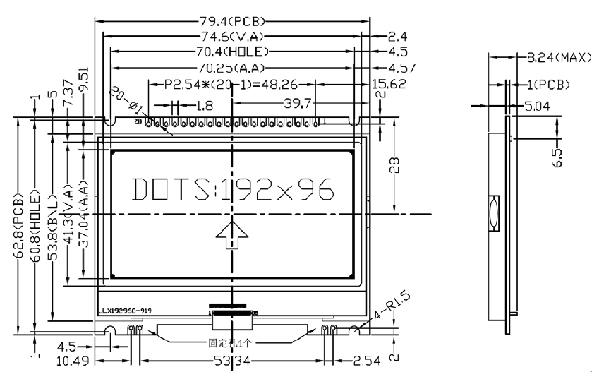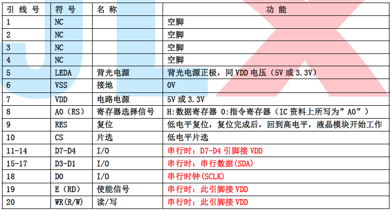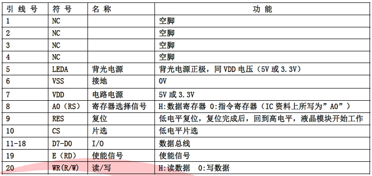 5. 指令功能强: 可软件调对比度、正显/反显转换、行列扫描方向可改(可旋转180 度使用)。