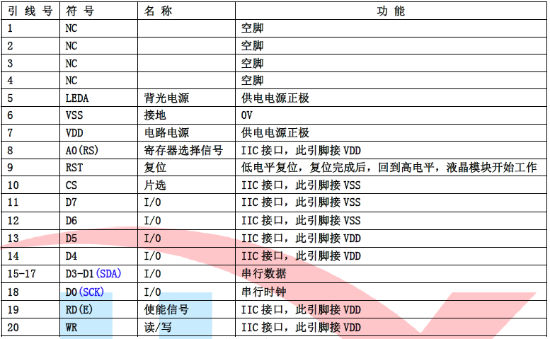 6.接口简单方便: 采用4 线SPI 串行接口,或选择并口(6800 时序和8080 时序可选),或IIC