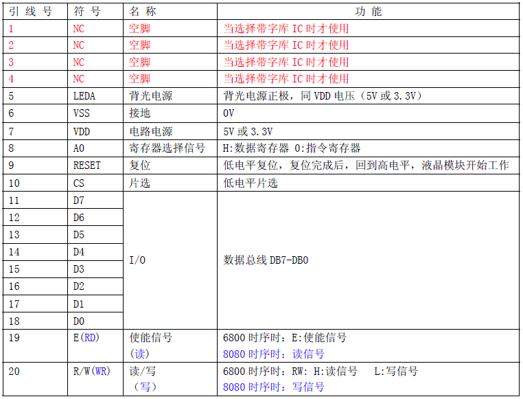 8.可以选择带字库IC(IC 型号:JLX-GB2312-3205,此IC 为可选的配件)