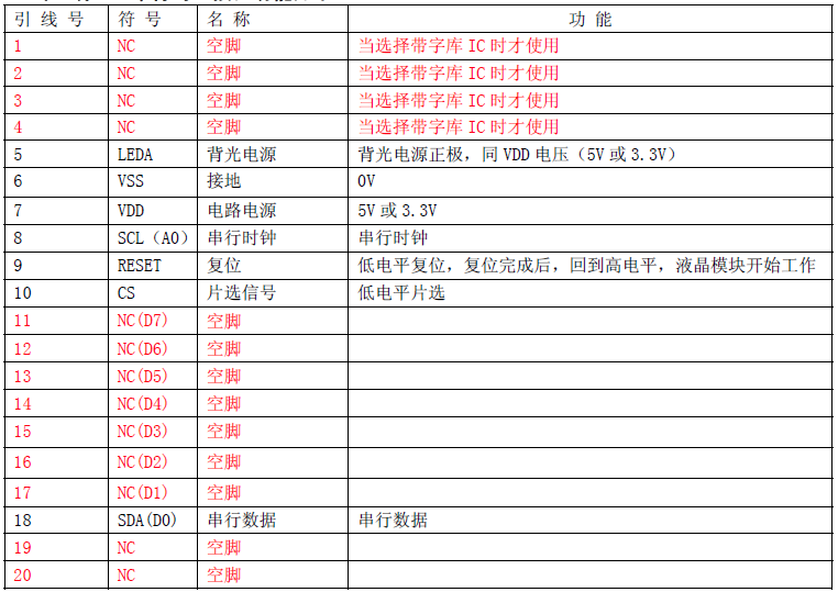 (2)当4 线SPI 串行时,接口功能如下: