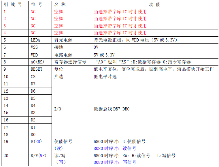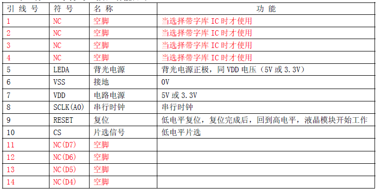 8. 可以选择带字库IC(IC 型号:JLX-GB2312-3204,此IC 为可选的配件)