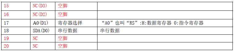 (2)当4 线SPI 串行时,接口功能如下: