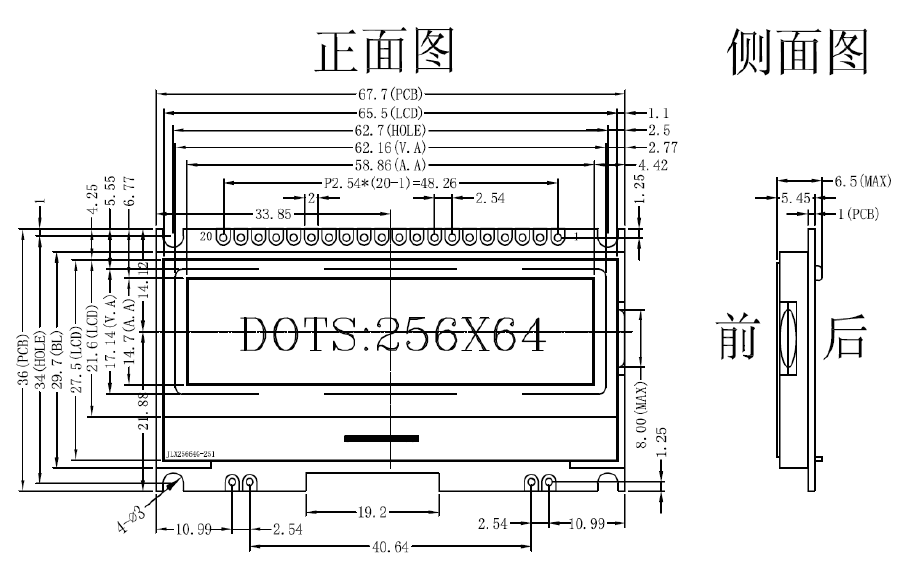 3. 功耗低: 不带背光1mW(3.3V*0.3mA),带背光不大于250mW(3.3V*75mA);