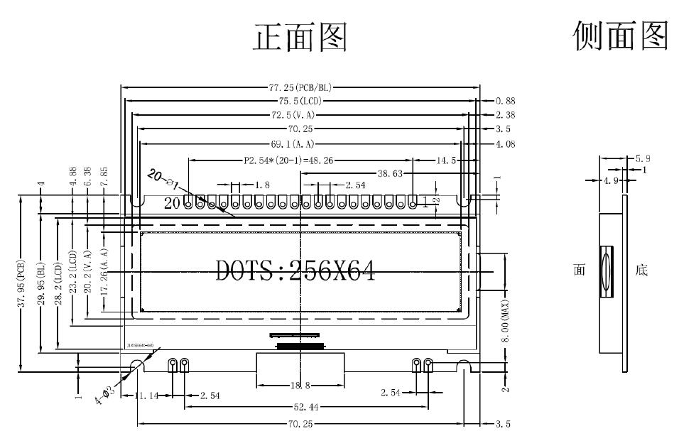 2. IC 采用矽创公司 ST75256,功能强大,稳定性好