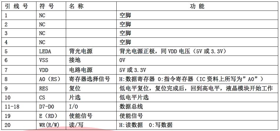 (1)模块的并行接口引脚功能