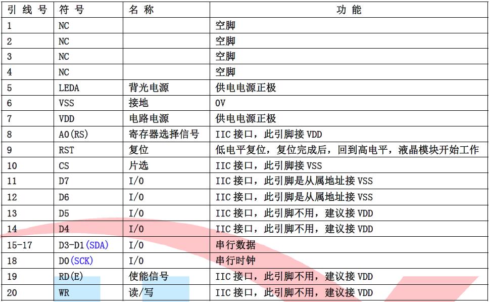 (3)模块的IIC 接口引脚功能