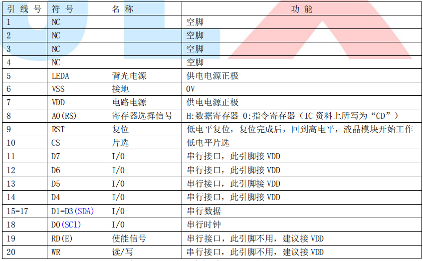 6.接口简单方便:可选I²C 总线、4 线SPI 串口、6800 系列并口、8080 系列并口。