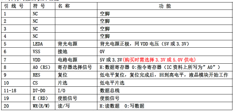 3.功耗低:不带背光3.0mW(3.3V*(0.5mA 参考值)),带背光不大于205mW(3.3V*62mA);