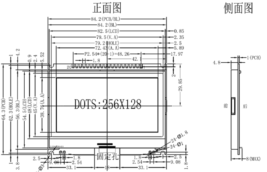 ●256*128 点阵单色图片。