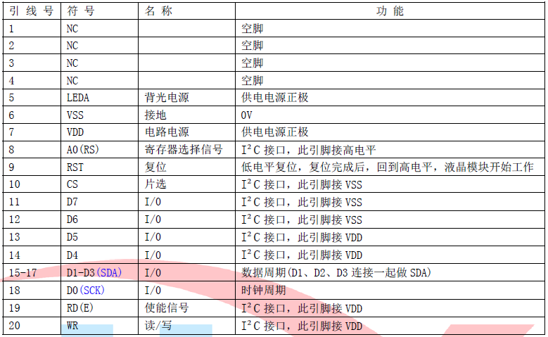 (2)四线串行时接口引脚功能