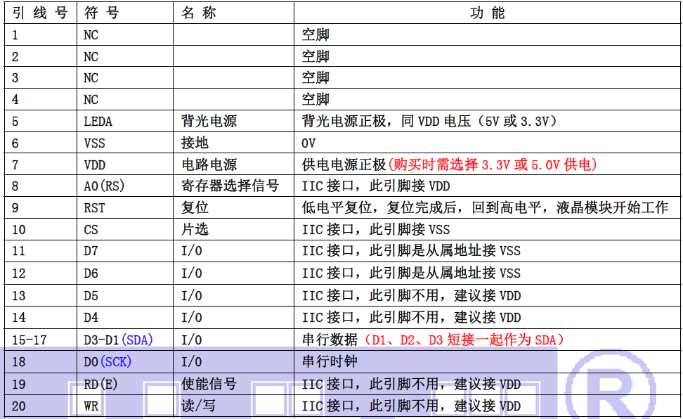 4.接口简单方便:可采用 4 线 SPI 串行接口、并行接口,I2C 接口。