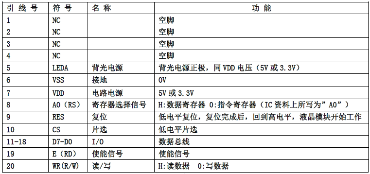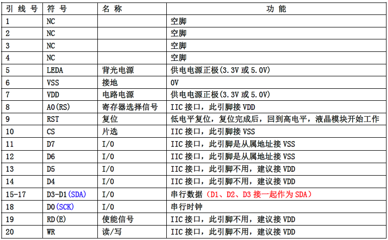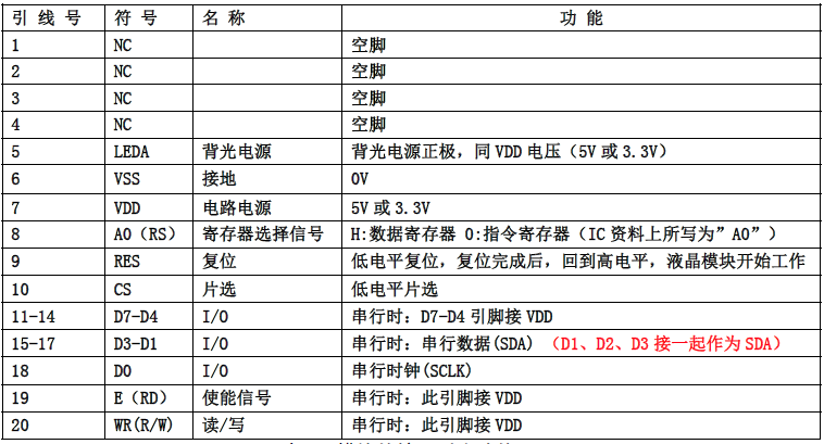 (2)四线串行时接口引脚功能