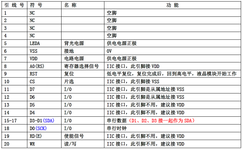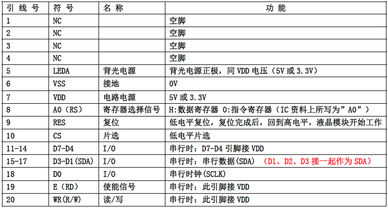 (2)四线串行时接口引脚功能