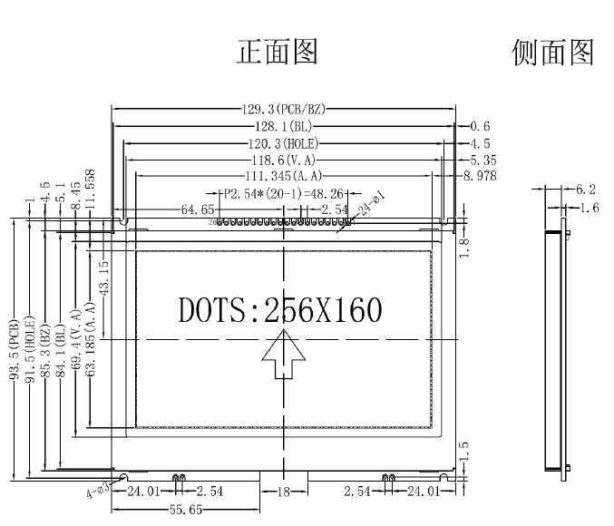 2. IC 采用矽创公司ST75256,功能强大,稳定性好