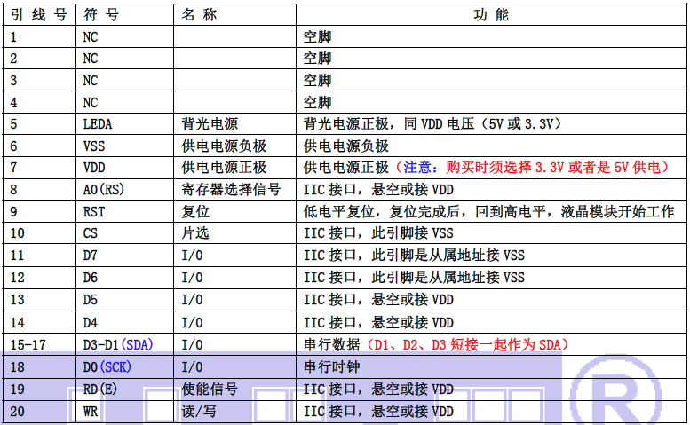 4. 接口简单方便:可采用4 线SPI 串行接口、并行接口,I2C 接口。