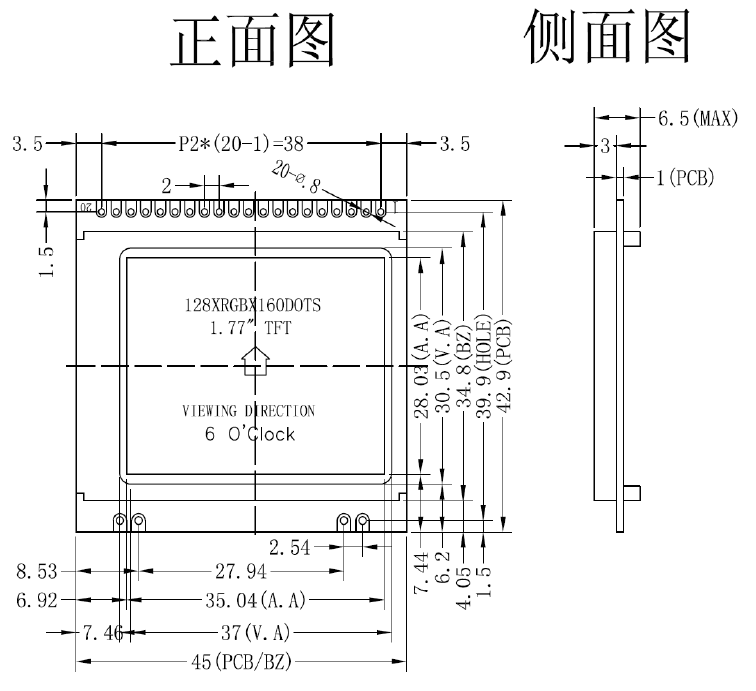 1. 结构轻、薄、带背光、带铁框。 2. IC 采用ST7735S,功能强大,稳定性好 3. 指令功能强:例如可以用指令控制显示内容顺时针旋转90、逆时针旋转90°或倒立竖放。 4. 接口简单方便:采用16位并行接口。 5. 工作温度宽:-20℃ - 70℃; 6. 储存温度宽:-30℃ - 80℃;