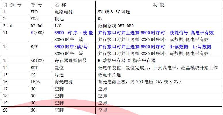6. 接口简单方便:并行接口(6800 时序和8080 时序可选)。