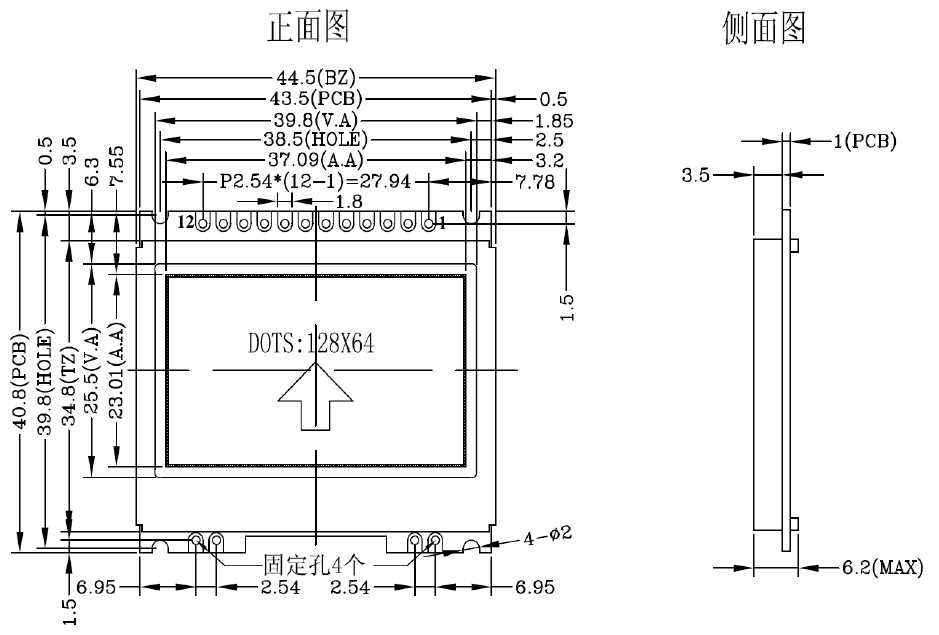 3. 功耗低:当电压为3.3V 时,功耗低:不带背光1mW(3.3V*0.3mA),带背光不大于150mW