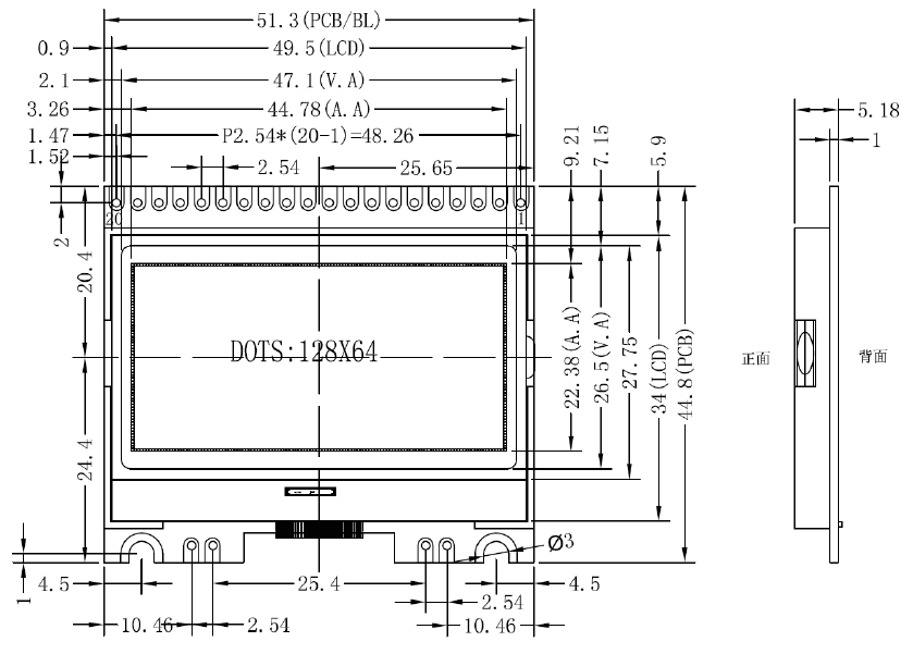 3. 功耗低:1~100mW(关掉背光:0.3mA@3.3V,打开背光不大于100mW);