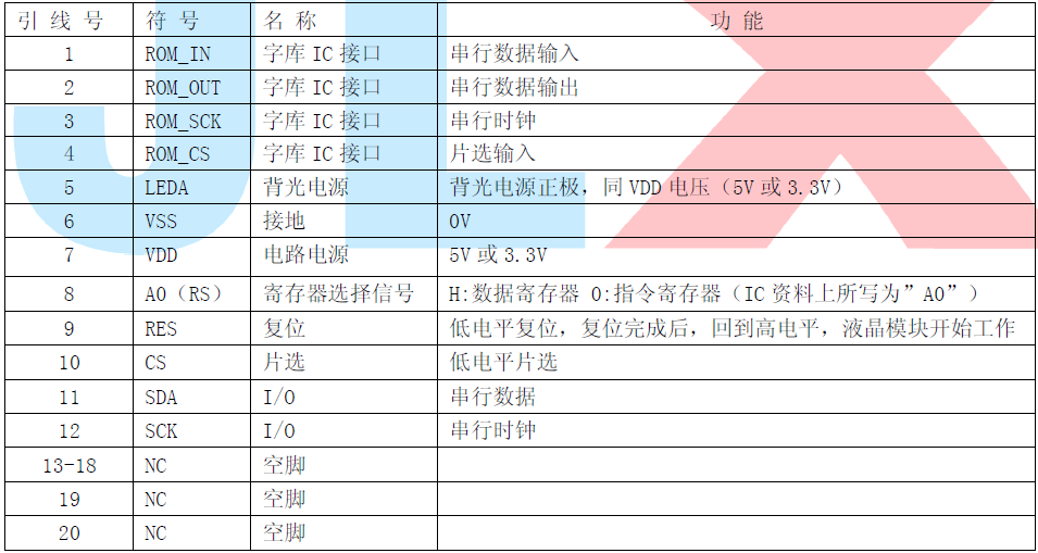 6. 接口简单方便:可采用4 线SPI 串口,或选择并口(6800 时序和8080 时序可选)。