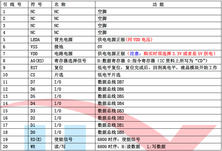 3. 功耗低:当电压为3.3V 时,功耗低:不带背光1.29mW(3.3V*(0.39mA 测试最大值)),带背光不大于150mW(3.3V*45mA);