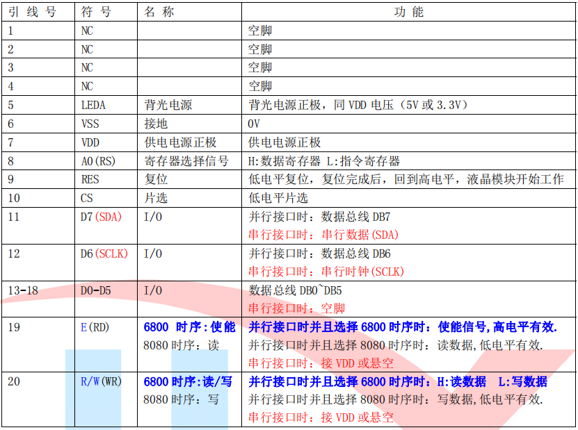 6.接口简单方便:可采用4 线SPI 串口,或选择并口(6800 时序和8080 时序可选)。