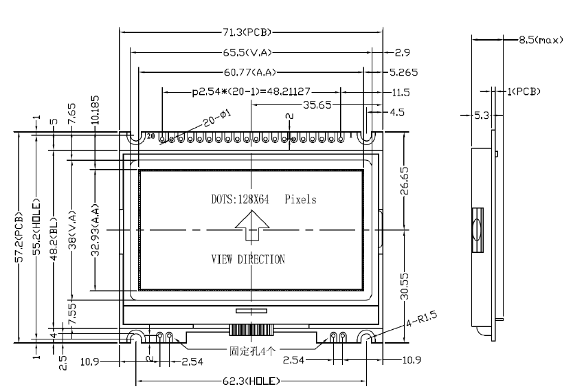 (5)按照 5*8 点阵汉字来计算可显示21 字*8 行;