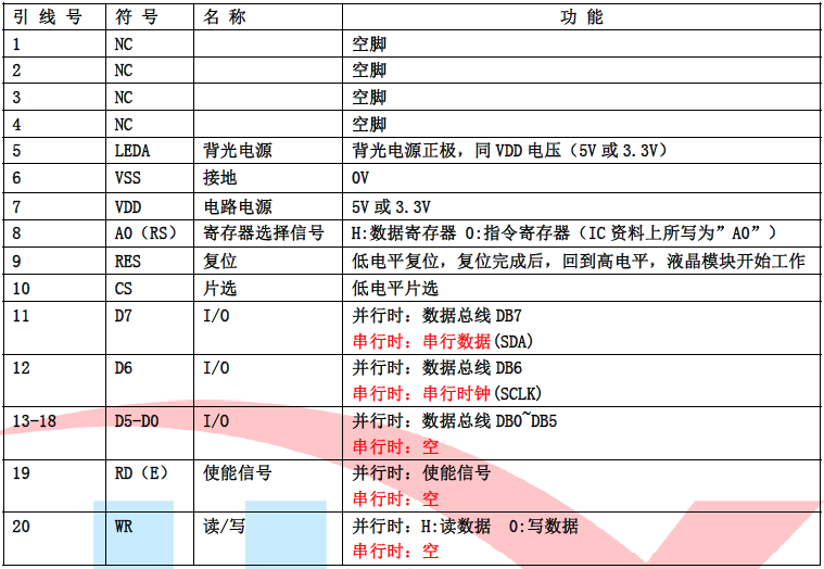 6.接口简单方便:可采用4 线SPI 串行接口,或选择并行接口(6800 时序和8080 时序可选)。