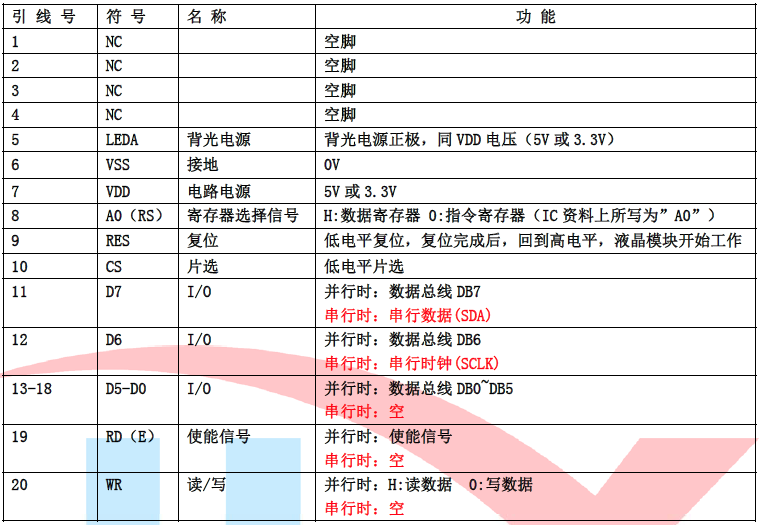 6.接口简单方便:可采用4 线SPI 串行接口,或选择并行接口(6800 时序和8080 时序可选)。