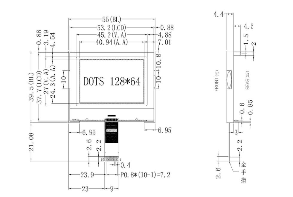 3. 功耗低: 不带背光1mW(3.3V*0.3mA),带背光不大于100mW(3.3V*30mA);