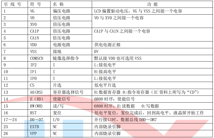 (1)并行时接口引脚功能